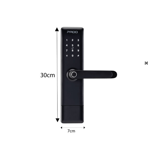 Fechadura inteligente pado 600w fechadura com ip55 ideal para ambientes externos este modelo tem ip55 teste realizado em laboratório com jatos de água e poeira. com a pado 600w você configura usuários cria senha com validade para hóspedes através de aplicativo de celular e você pode fazer isso tudo a distância quando sua fechadura está conectada ao gateway! Sendo assim você controla sua fechadura pela internet! também conta com o diferencial de possuir uma máquina de alta segurança em dimensões que permitem a substituição com facilidade em portas que já apresentam furação. recomendada para porta de madeira com espessura de 30 a 75 mm. especificações: * método de abertura: senha biometria bluetooth cartão aplicativo e chave manual. * capacidade máxima de senhas numéricas: 150 senhas * capacidade máxima de impressões digitais: 200 digitais * capacidade máxima de cartões: 200 cartões * aplicativo: “pado digital locking” compatível com ios 9.0 ou superior e android 4.3 ou superior * funções do aplicativo: configuração da fechadura controle de acesso chave eletrônica e abertura remota * abertura remota (requer a utilização do gateway). * chave eletrônica: chave de acesso gerada e compartilhada eletronicamente (requer a utilização do gateway) * guia de voz em português * materiais: zamac polímeros e aço * máquina: alta segurança * proteção: ip55 * temperatura de funcionamento: -10 ºc a 55 °c * alimentação: 4 pilhas aa * alimentação de emergência: porta micro-usb * tipo de cartão: mifare iso/iec 14443 a * frequência de operação dos cartões: 13 56 mhz * bluetooth versão 4.0 bluetooth versão 4.0 wi-fi 2 4 ghz 802.11 b/g/n alimentação: corrente continua 5v/500ma (cabo usb-a – usb-c) recomendações: limpar com pano macio e seco. não utilizar a bateria recarregável. Substituir todas as baterias quando necessário. Utilizar a chave mecânica apenas em emergências. conteúdo da embalagem: 01 fechadura digital inteligente fde-600w pado 01 gateway pado (hub wi-fi) 01 manual de instruções peso líquido: 2.912kg peso bruto: 2.912kg